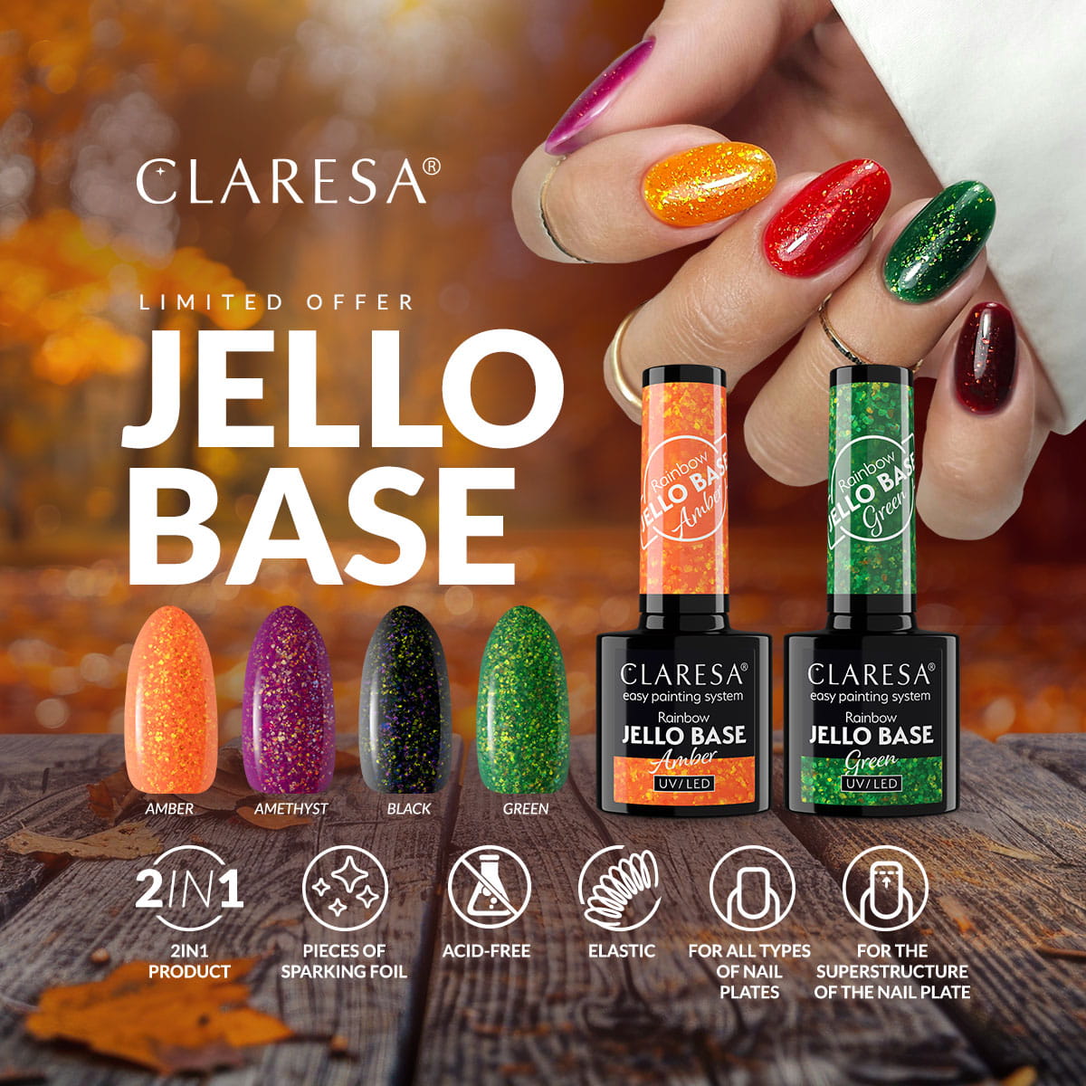 Cool evenings by the fireplace with a cup of hot chocolate, the smell of roasted chestnuts, the rustle of leaves underfoot during autumn walks… Now you can hold on to this magical time of year for longer with the new Claresa Rainbow Jello Base collection!
