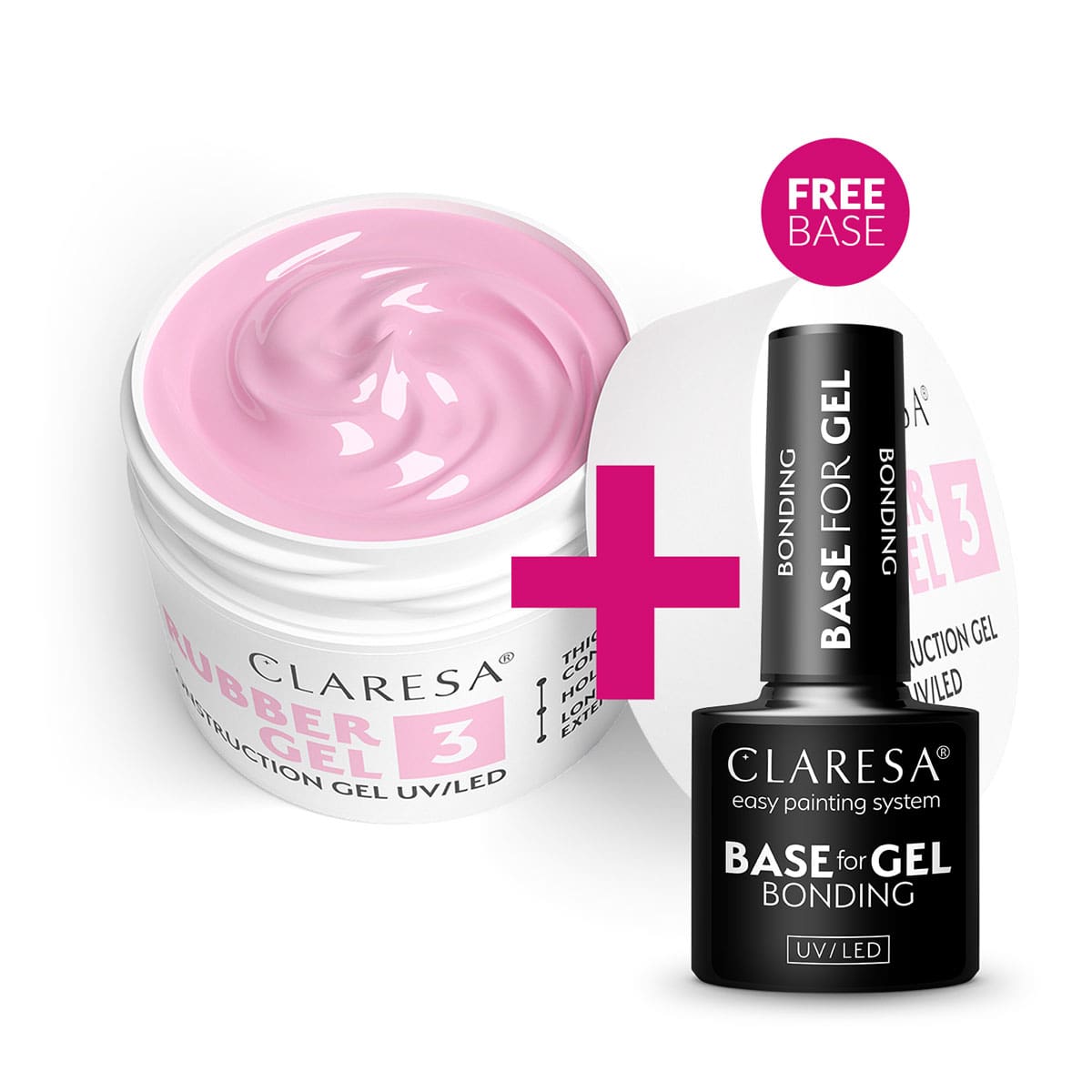 This 45g jar comes with a FREE Claresa Bonding Base (5g). This specialized priming base is essential for the Rubber Gel system, ensuring maximum adhesion to the natural nail plate and preventing lifting.