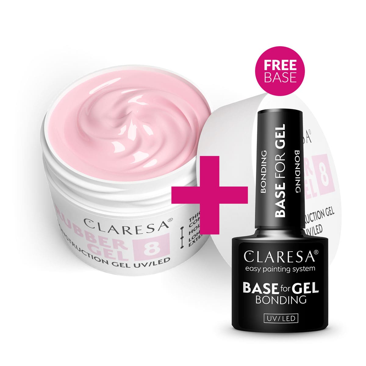 This 45g jar comes with a FREE Claresa Bonding Base (5g). This specialized priming base is essential for the Rubber Gel system, ensuring maximum adhesion to the natural nail plate and preventing lifting.